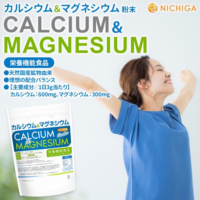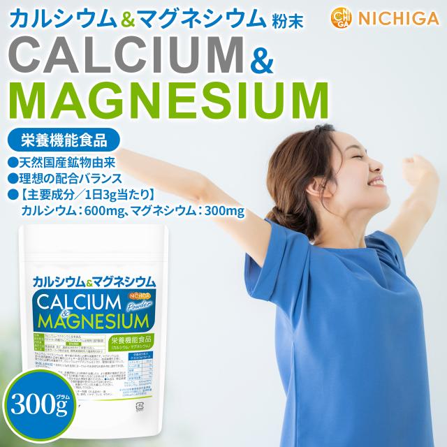 カルシウム&マグネシウム 粉末 300g 【メール便専用品】【送料無料】 栄養機能食品 2:1 理想の配合バランス 骨や歯の形成に必要な栄養素 [01] NICHIGA(ニチガ)