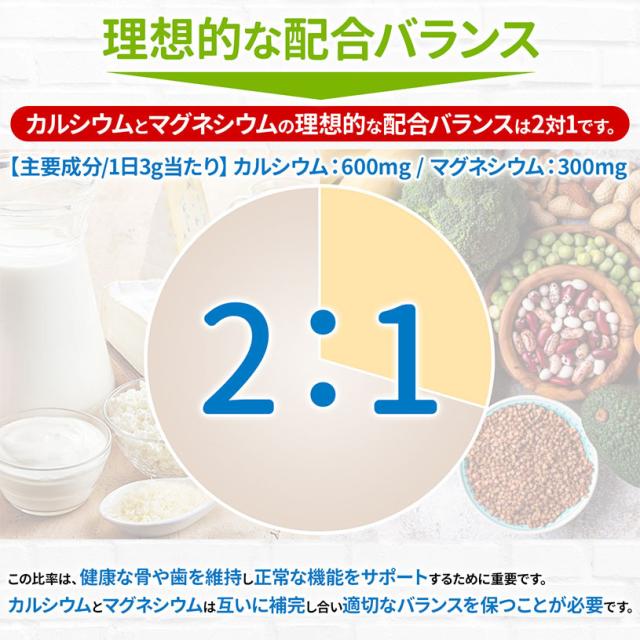カルシウムとマグネシウムは2対1、理想の配合バランス。