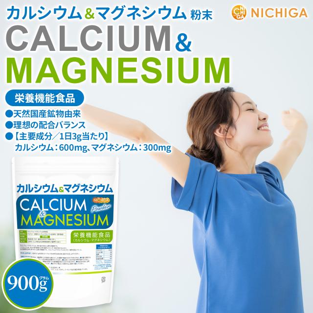カルシウム&マグネシウム 粉末 900g 【メール便専用品】【送料無料】 栄養機能食品 2:1 理想の配合バランス 骨や歯の形成に必要な栄養素 [01] NICHIGA(ニチガ)