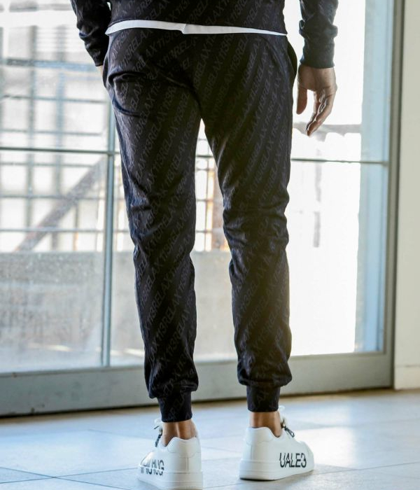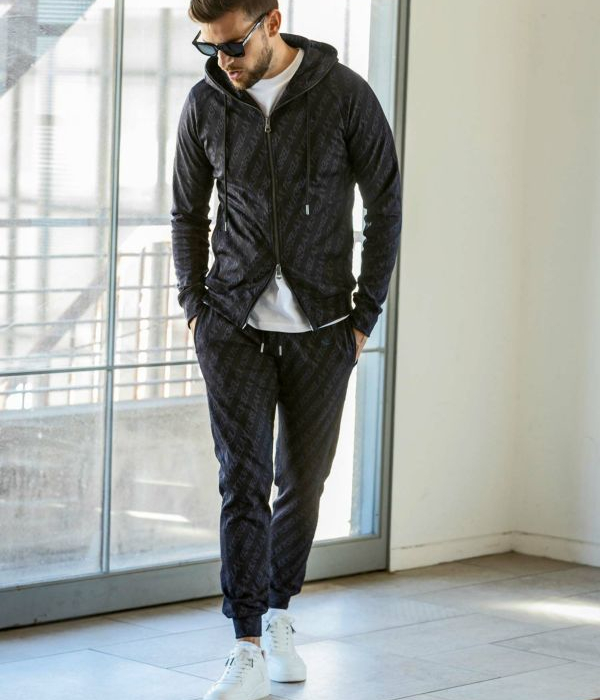ブランドロゴを印象的に配置した総柄のジョガーパンツ。ジャガード織で表現したロゴは同色使いにすることで高級感のある表情に仕上がりました。