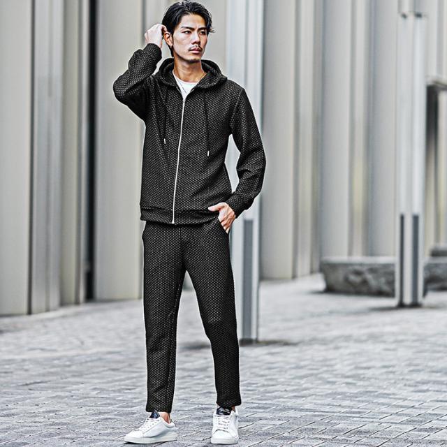 パーカー メンズ セットアップ メンズ ブランド スウェット 上下 メンズ ジップパーカー メンズ ストレッチ アンクルパンツ キルティング 黒 ネイビー ブラック おしゃれ 秋 秋服 秋物 秋冬 メンズファッション リゾート サーフ系 ちょいワル