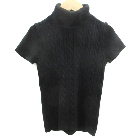 【中古】アトリエサブ ニット カットソー 半袖 タートルネック ケーブル編み ウール混 38 ブラック ■MO レディース