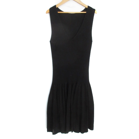 【中古】コムサデモード ニットワンピース フレアワンピース 薄手 ミモレ丈 ノースリーブ Vネック M 黒 レディース
