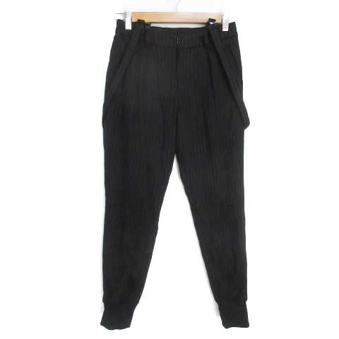 【中古】ルフトローブ ジョガーパンツ テーパードパンツ イージー ロング丈 サスペンダー付き 36 黒 白 レディース