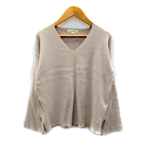 【中古】プラステ PLST ニット カットソー 長袖 Vネック 無地 M ベージュ /SY2 レディース