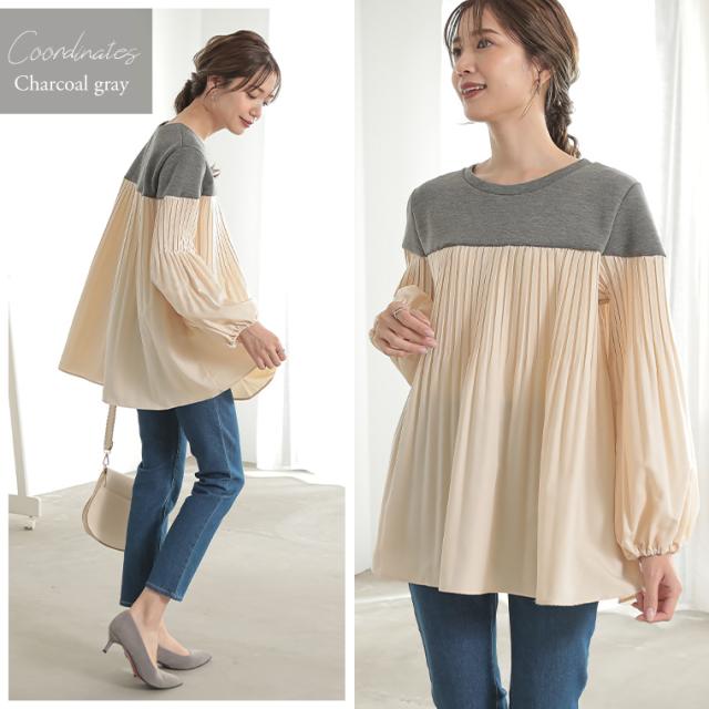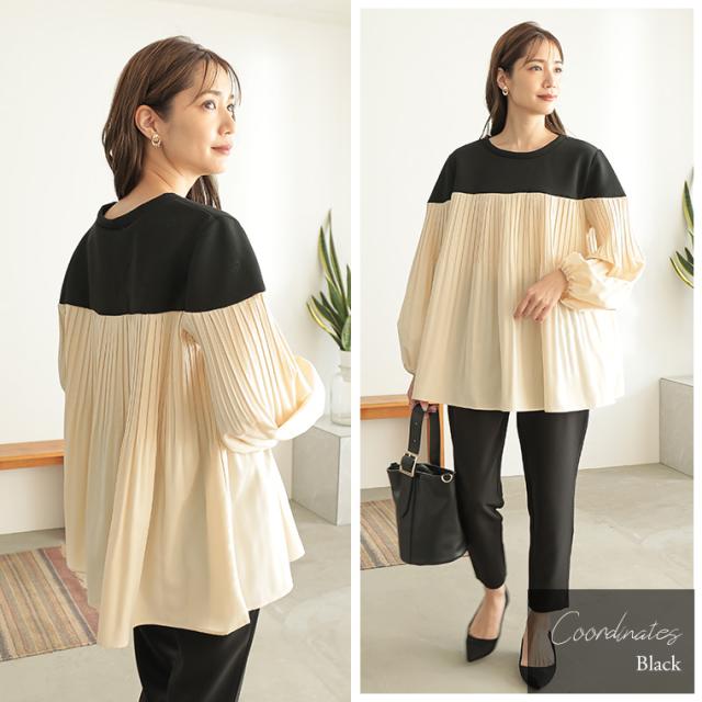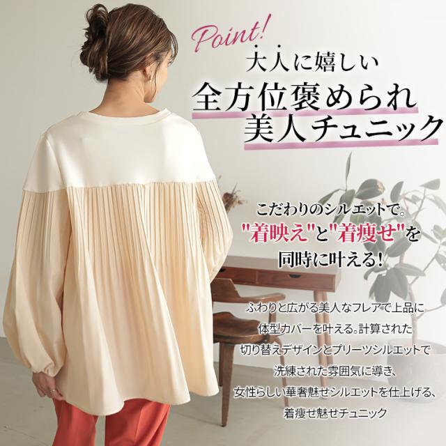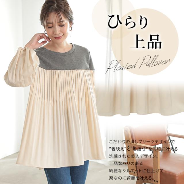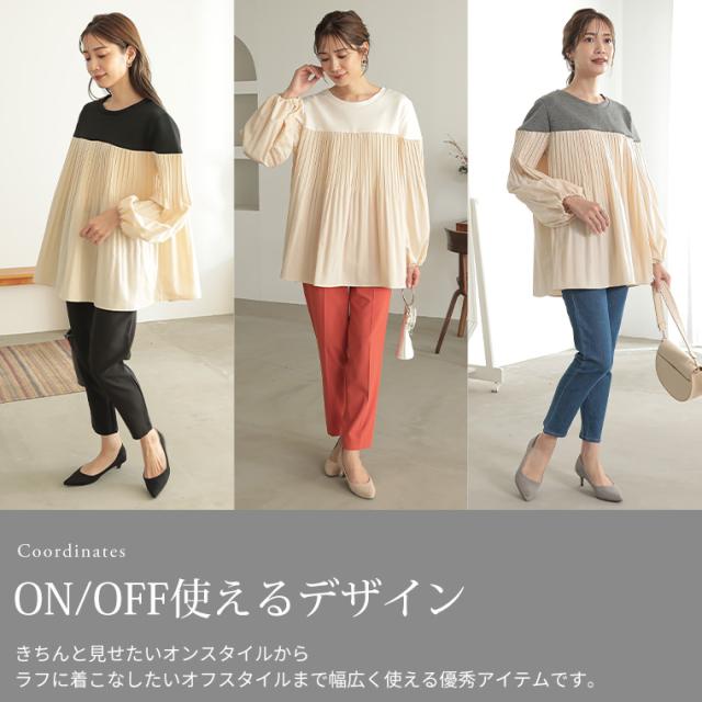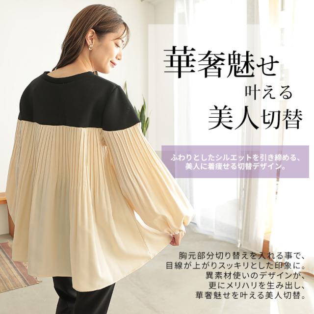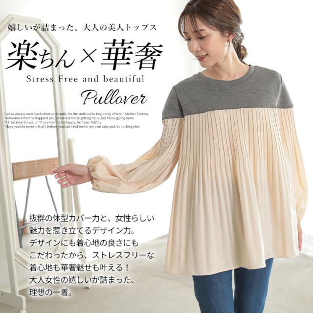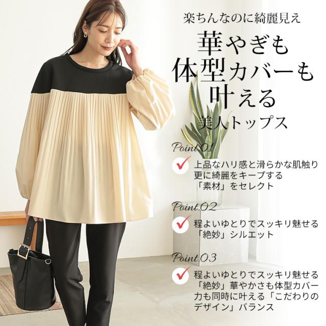 体型カバー&着やせ!プリーツ切替プルオーバーブラウス