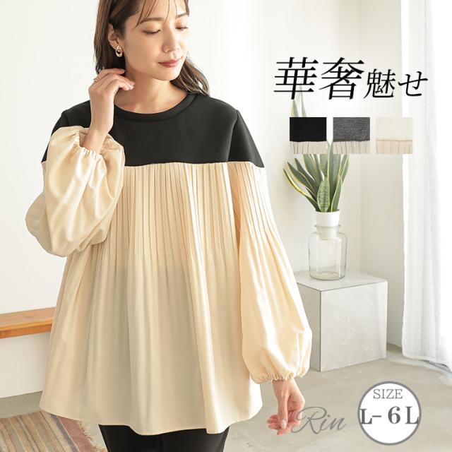 新作 大きいサイズ レディース ブラウス | Rin 美人に体型カバー&着やせ! プリーツ切替 プルオーバー ブラウス チュニック オフィス 大人 通勤 ママ [860879] LL 3L 4L 5L 6L