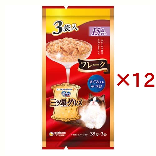銀のスプーン 三ツ星グルメ パウチ フレーク 15歳頃からまぐろ入りかつお(3袋入×12セット(1袋35g))[キャットフード(ウェット)]