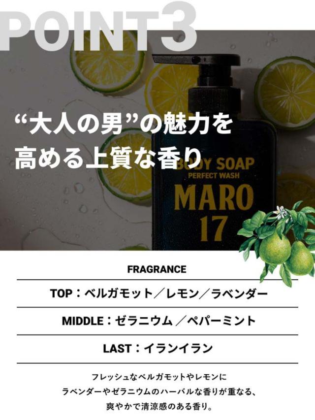 【MARO17 ボディソープ パーフェクトウォッシュ ベルガモット&レモンの香りの商品詳細】