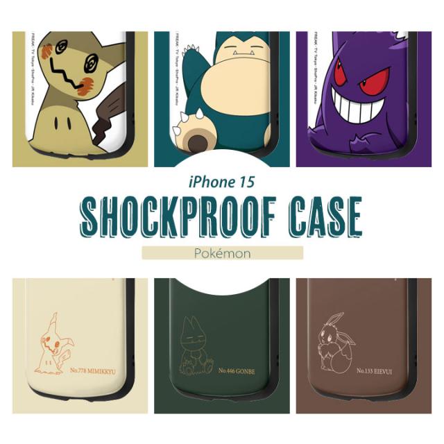 iPhone15 6.1インチ ポケットモンスター 耐衝撃ケース MiA pokemon ポケモン ミミッキュ カビゴン ゲンガー ゴンべ イーブイ ベージュ ダークグリーン ココアブラウン メール便送料無料