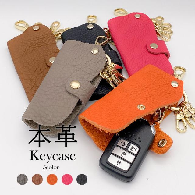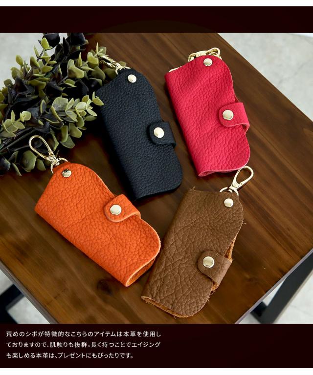 キーケース 本革 シュリンクレザー 牛革 鍵 カギ 車 キーチャーム バッグチャーム キーリング付き プチプラ シボ革 ペアギフト ユニセックス プレゼント オレンジ ブラック ソフト 柔らかい シュリンクレザーキーケース GZKC-A082