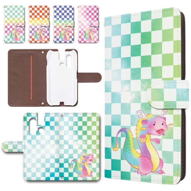 mamorino6 ケース 手帳型 カメラ穴あり レインボー ドラゴン 市松模様 きらきら カワイイ 虹色 龍 虹 mamorino6 カバー shf35 au キッズケータイ スマホケース マモリーノ6 ケース 手帳ケース 手帳 まもりーの6 けーす 子供用