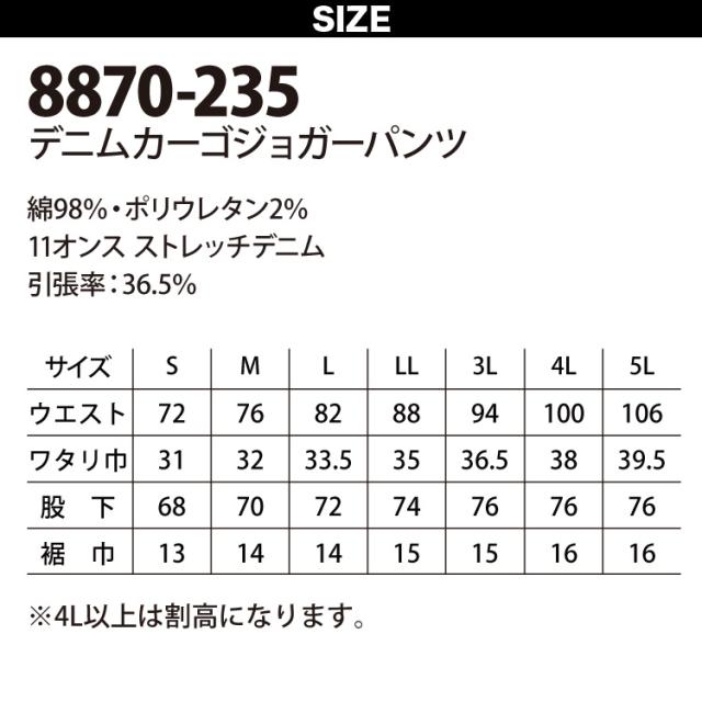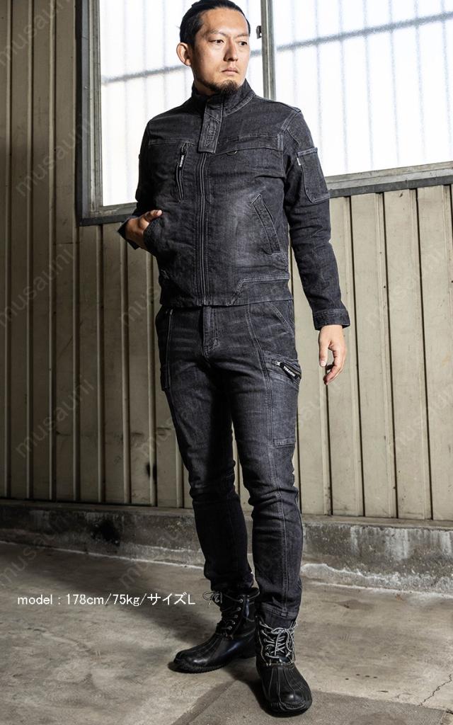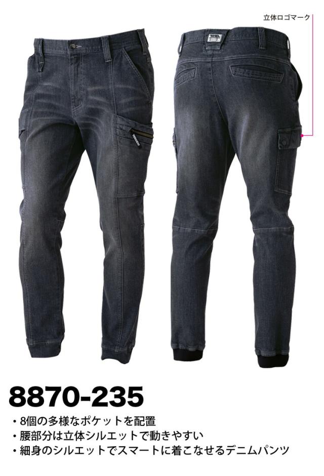 寅壱 デニムワークジャケット カーゴジョガーパンツ 上下セット 8870-124 8870-235 S-5L ストレッチ ハード加工 かっこいい おしゃれ 作業着 作業服 TORA