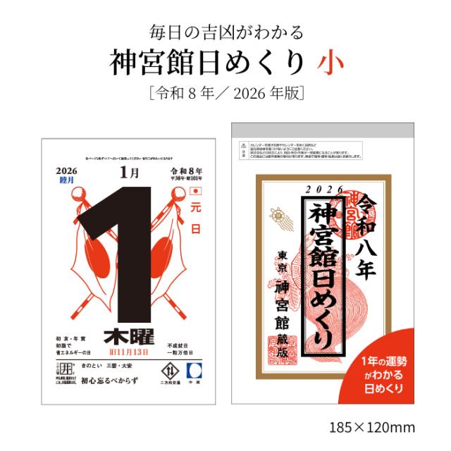 カレンダー 2026年 神宮館日めくり (小) 2026 令和8年 神宮館オリジナル 開運 年中行事 運勢 六輝 選日 大安 一粒万倍日 コンパクト 250819