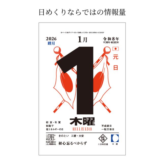 【関連商品キーワード】神宮館 暦 カレンダー 2026 日めくり 日めくりカレンダー 小 カラフル 大きい ミニサイズ 二十四節気 書き込み インテリア 可愛い 2026年版 カラフル 大きい シンプル コンパクト メモ欄 メモスペース パステル カラフル 13枚 暦 こよみ 六輝 年中行事 大安 仏滅 旧暦 干支 祝日 日曜日始まり 予定表 名入れ 年末 2026年 文字月表 インデックスシール 字が大きい 見やすい
