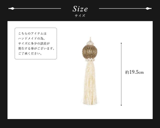 ★クリスマスツリーに高級感を添えてくれるタッセルオーナメントです。 ラインストーンをあしらった美しいボールがアクセントになったエレガントなデザインです。オーナメントがゆらゆらと揺れる度に球面を走るラインストーンがキラキラと輝きます。 ボールにはアンティーク風の塗装が施されており、長い年月を重ねてきたかのような重厚感と美しさが感じられます。 長めに取ったタッセルの落ち感が優雅な雰囲気を漂わせます。 クリーム色とゴールドの組み合わせで、華やかさのなかにも上品さを纏います。 クリスマスツリーのワンポイントとして、デコレーションの個性がより引き立つアイテムです。 季節を問わずお楽しみいただけるデザインなので、クリスマスの時期が過ぎてもお部屋のインテリアとしてお使いいただけます。玄関先やリビングの壁に掛けてウォールデコレーションを楽しんだり、ドアノブや花瓶、お気に入りの小物類などに掛けてアレンジしたり、様々な用途でご使用いただけます。 サイズは高さが約19.5cmです。 |