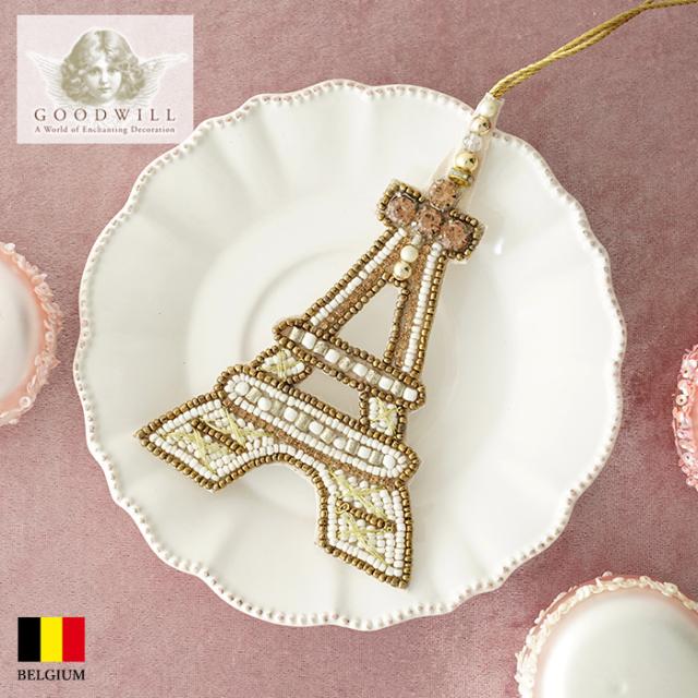 クリスマスツリー 飾り オーナメント GOODWILL グッドウィル エッフェル塔ビーズ ゴールド ホワイト 13cm [IF 10083]