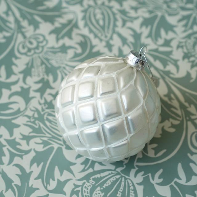 柔らかなパールホワイトが上品な印象を与えてくれるネットボールガラスオーナメントです。