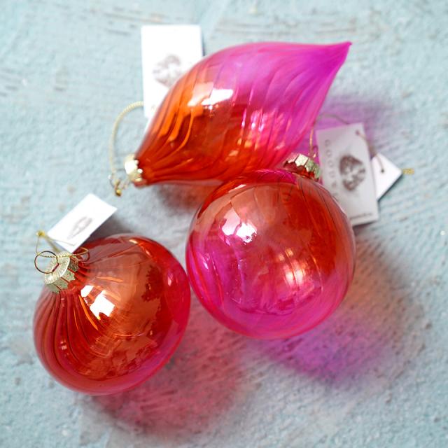 オレンジからピンクに移りゆくグラデーションがとても幻想的で美しいガラスボールオーナメントです。