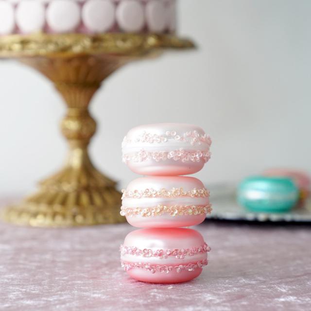 甘い香りが漂ってきそうなマカロンのガラスオーナメント。