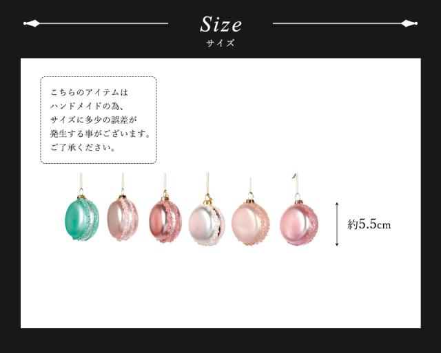 ★甘い香りが漂ってきそうなマカロンのガラスオーナメント。 GOODWILLのスイーツ系シリーズ『LE CANDY SHOP』のアイテムのひとつです。 テーマは『お菓子の国』。GOODWILLの独創的な世界観をふんだんに詰め込んだフォトジェニックなオーナメントです。ポップでキュートな色使いにこだわり、まるでメルヘンの世界から飛び出してきたかのように私たちを非日常空間へと誘います。 マカロンパリジャンの特徴であるふちのギザギザ(ピエといいます)には小粒のスパンコールが装飾されており、キラキラとした繊細な輝きを放ちます。 クリスマスだけでなく季節を問わずデコレーションできるとインテリア好きな方に人気のオーナメントです。カフェインテリアにもおすすめです。 ピンクの可愛らしい化粧箱にピンクのリボンを掛けてお届けします。 ピンク系4個、ホワイト1個、ターコイズグリーン1個、全部で6個入っています。サイズは高さが約5.5cmです。 |