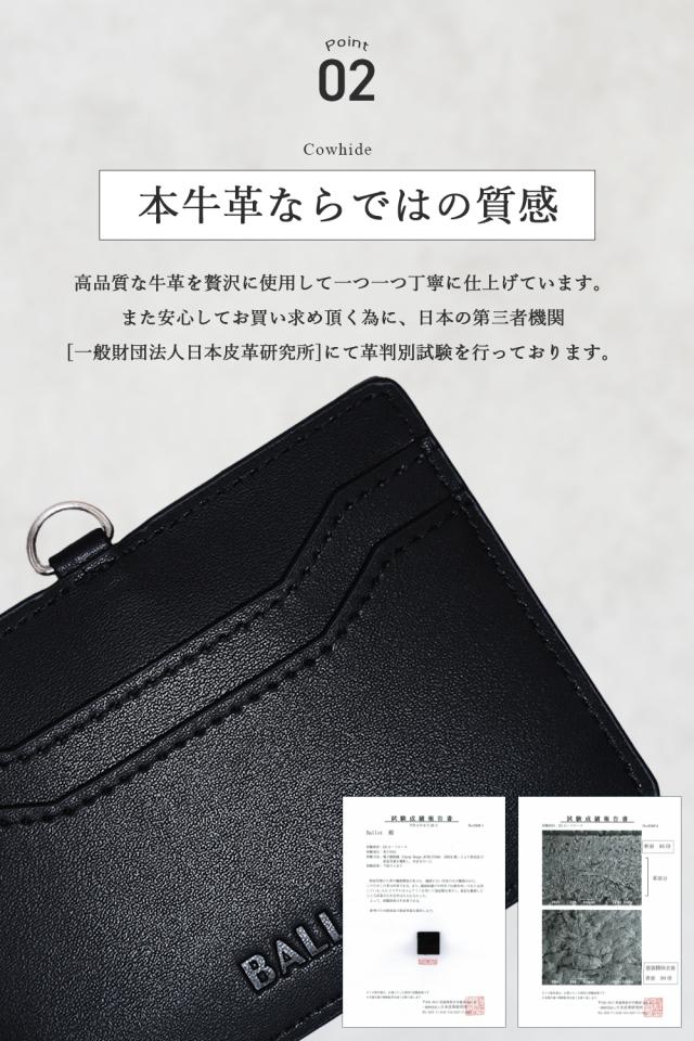 【本牛革ならではの質感】合皮のカードフォルダーが多いなか、BALLOTでは本革での生産にとことんこだわりました。高品質な牛革を贅沢に使用して一つ一つ丁寧に仕上げ。また、皆様に安心してお買い求め頂く為に、日本の第三者機関一般財団法人日本皮革研究所にて革の判別試験を実施。