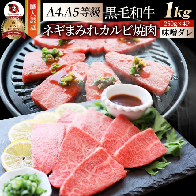 A4,A5等級 特選 黒毛和牛 カルビ焼肉 1kg(250g×4) ねぎまみれ 旨辛味噌ダレ( A4 〜 A5等級 )牛肉 肉 ギフト プレゼント 食品 お祝い 霜降り 贅沢 黒毛 和牛 国産 祝い お祝い返し 記念 通販 お取り寄せ グルメ 誕生日 焼肉セット 焼肉 牛 内祝 お肉の しゃぶまる