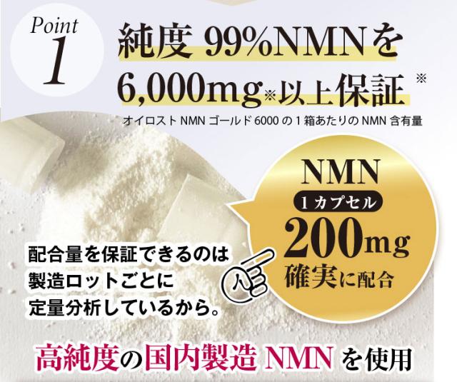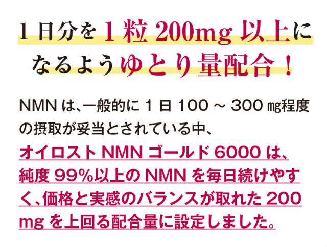 オイロストNMNは1粒に純度99%以上のNMNを200mg以上配合!