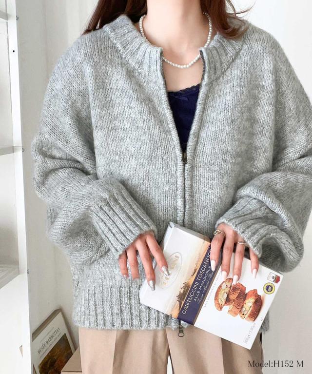 ミックスカラー糸をざっくりと編み立てた、表情豊かなニットブルゾン。