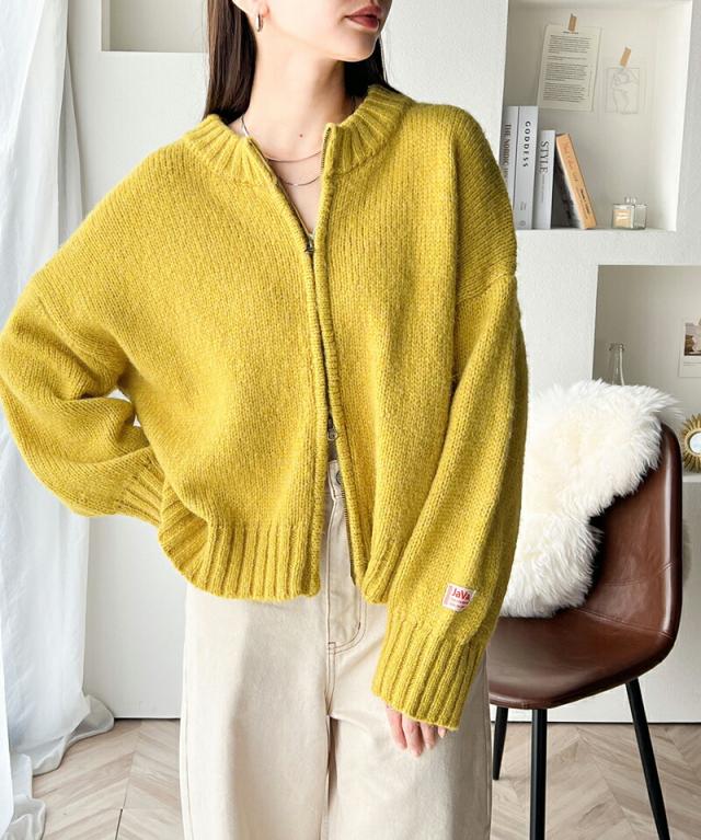 ★《Javaジャバコラボ》着こなし自由自在。2wayダブルジップ ミックスニットブルゾン★