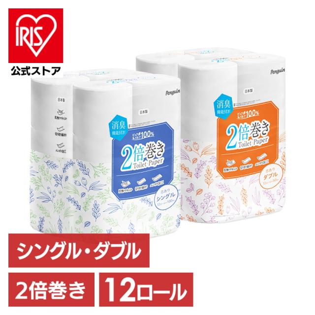 2倍巻きトイレットペーパー シングル 100m ダブル 50m 12ロール 全2種類 トイレットペーパー 2倍巻き ペンギン 丸富製紙 シングル ダブル 12ロール トイレットロール 紙