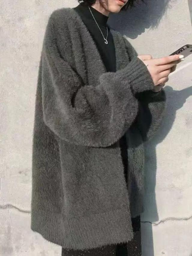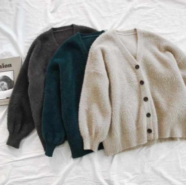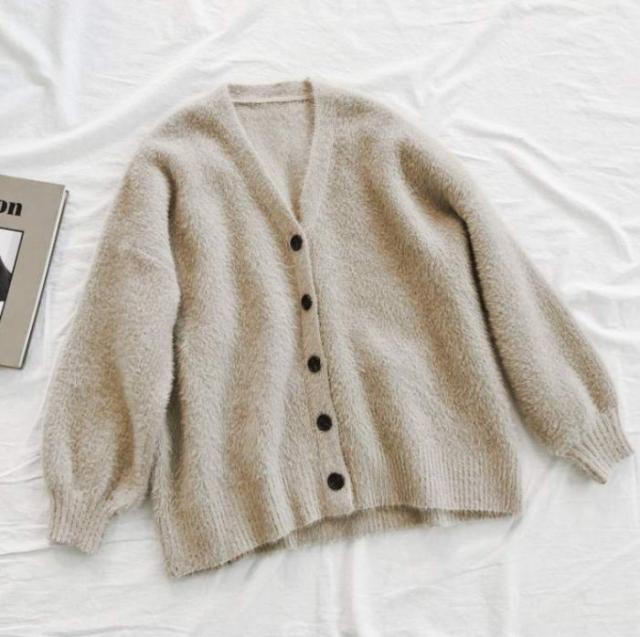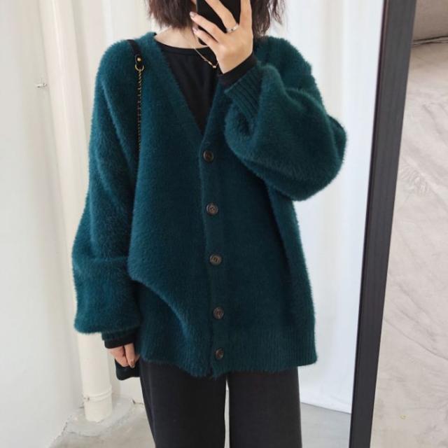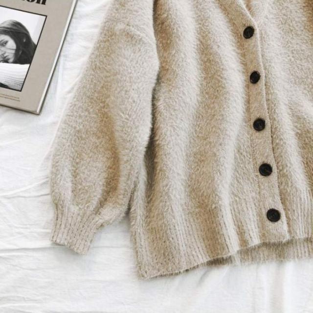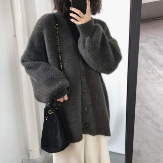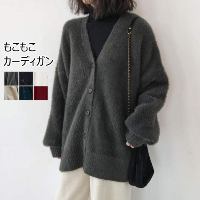 カーディガン レディース 秋冬 シャギーカーディガン もこもこ あったか 袖ゆったり アウター バルーンスリーブ カーデ