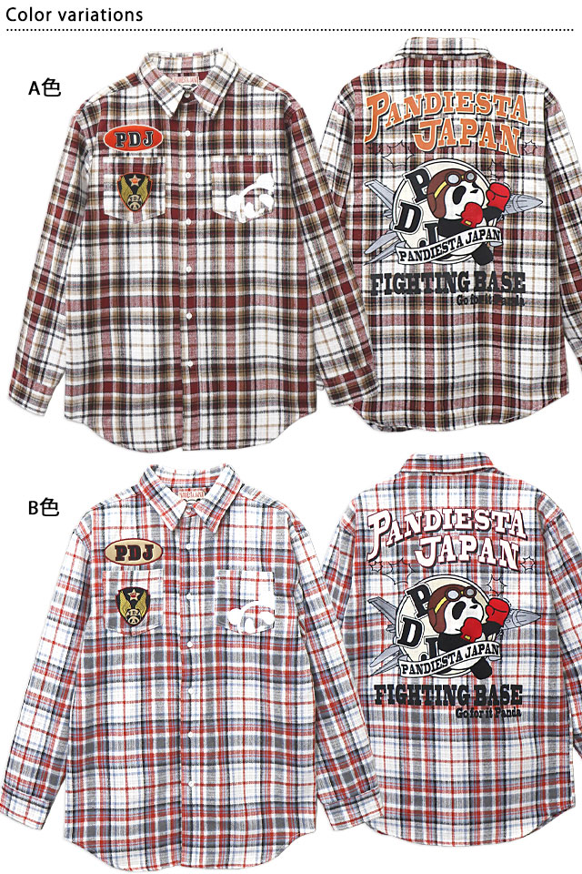 PDJ FIGHTERチェックシャツ PANDIESTA JAPAN 533602 パンディエスタジャパン パンダ ミリタリー 刺繍