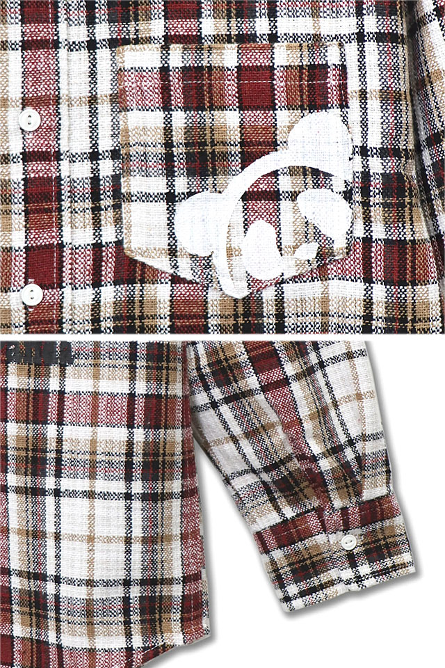 和柄ブランド【錦】の姉妹ブランドとして誕生した、お茶目なパンダをモチーフとした【PANDIESTA JAPAN】より「PDJ FIGHTERチェックシャツ(533602)」のご紹介です。 コットンライクな肉厚チェック生地をベースにした長袖シャツが登場しました。 第二次世界大戦以前の戦闘機に多く見られた「ノーズアート」と「ピンナップガール」にインスパイアされ、ファイティングポーズを決めるパンディエスタをデザインし、バックモチーフにしたチェックシャツになります。 ブランケットやラグに使われる肉厚なチェック生地をベースボディに使用しており、フロントバック共に刺繍とプリントで施しました。 着丈を長めに設定したロング丈シルエットで、これからのシーズン、軽く羽織るのに最適なアイテムです。 ポリエステル100%のチェック生地を使用しているので、洗濯による縮みもなく、綿の様なゴワつきもなく袖通し良く仕上がっています。 | |||||||||||||||||||||||||