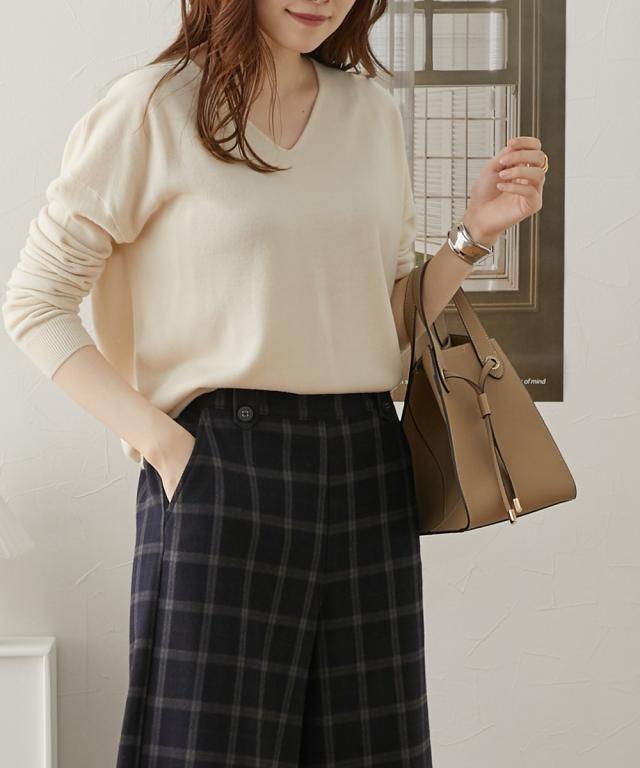 カシミヤタッチ ドロップショルダーVネックニット