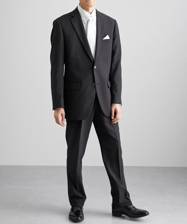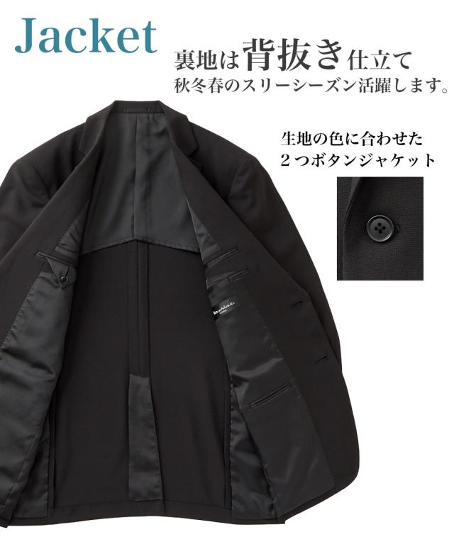 スーツ フォーマル メンズ 裾上げ簡単 洗えるアジャスター付き ストレッチ 素材 シングル2つボタン+ワンタック パンツ ブラック A4:165_78〜BB8:185_100 身長 ウエスト、単位:cm ニッセン nissen