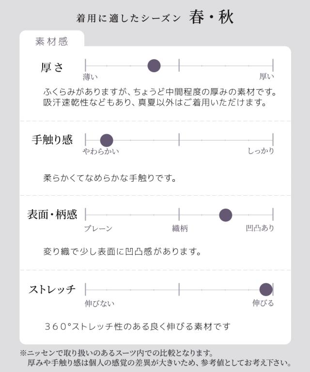 品質=[表地]ポリエステル95%・ポリウレタン5%(織物 ストレッチ変り織) [裏地]有(身頃部 ストレッチ裏地使用) 後ホック付ファスナー開 後ベンツ 新仕様は両脇ポケット付 透け感:なし 伸縮性:あり 生地の厚み:普通 光沢感:ややあり 季節:春・秋 シルエット:普通 原産国:中国製 備考:単位:cm ※サイズの誤差は多少発生します。ご了承ください。サイズ表は仕立てサイズになります。仕立てサイズとは、実際に商品を測った時のサイズのことです。
