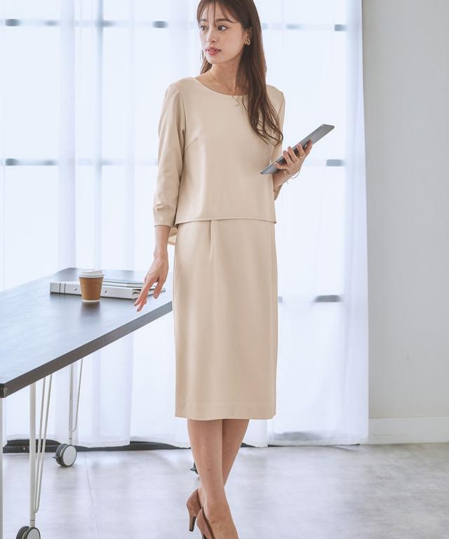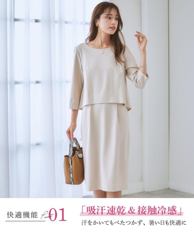 お客様のお声からポケット付きになった新仕様が入荷しました ◆大人気の多機能リスピィの上品な変り織シリーズに新作登場 七分袖丈で1枚で着用してもきちんと感のあるワンピース 前身頃は気になるお腹部分をカバーできる仕様♪ 後ろファスナー開きなので着脱もラクチンですよ! ・快適機能が満載で大人気の多機能素材”RISPY(R)”に、大人上品な変り織タイプ!・上品で主張しすぎない変り織なので、スーツとしては勿論単品使いもしやすい無地ライクで、 こなれた今どきのおしゃれセットアップをお楽しみいただけます。・毎日の通勤着としての着心地にもこだわり、360°ストレッチ、吸汗速乾、接触冷感、UVカット、防しわ等、機能性も充実。・こちらの変り織リスピィシリーズは、お好みに応じて自由にデザインとサイズをセレクトいただけます。