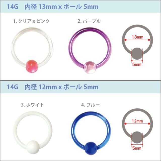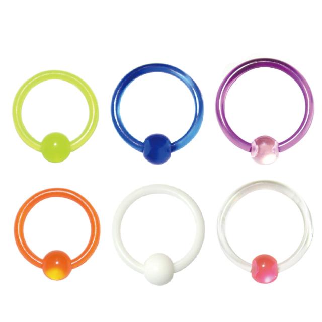 【メール便対応】ボディピアス キャプティブ ビーズ リング 14GA(1.6mm) UVアクリル ボディピアス【CBR キャプティブ ビーズリング】【BCR ボール クロージャー リング】 イヤーロブ クリア ホワイト ブルー オレンジ パープル イエローグリーン┃