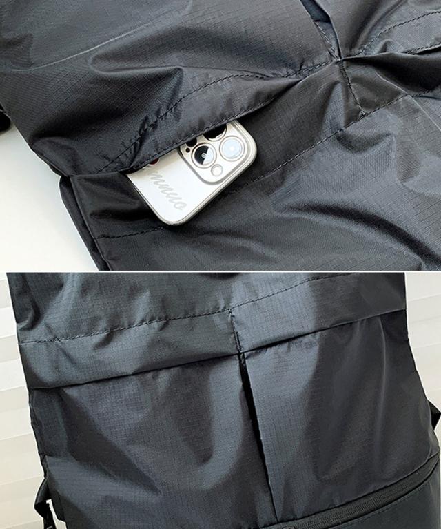 リュックとして使わないときは、肩紐を体側にしまっておける収納ポケット付き。
