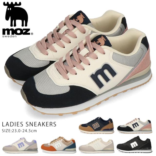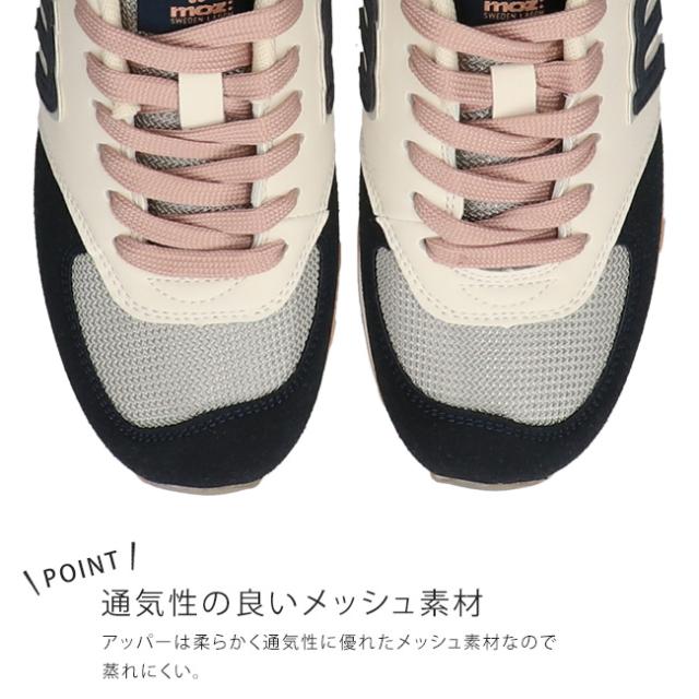 moz モズ スニーカー レディース ローカット 3E 幅広 歩きやすい 軽量 黒 ウォーキングシューズ MZ-10255 シューズ 靴