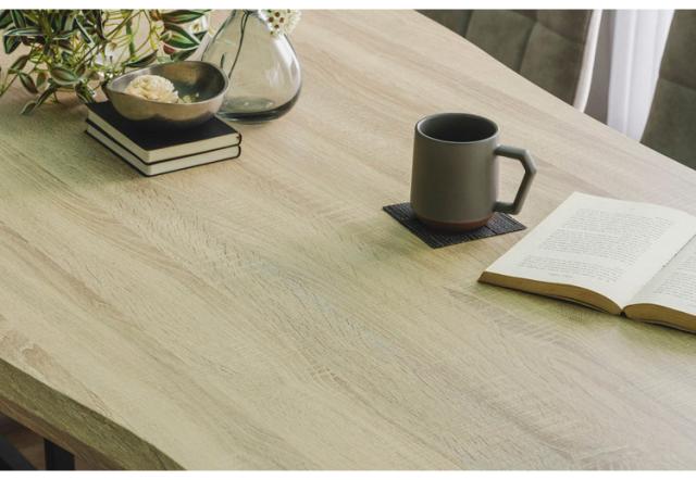 なぐりの入った一枚板風のテーブル