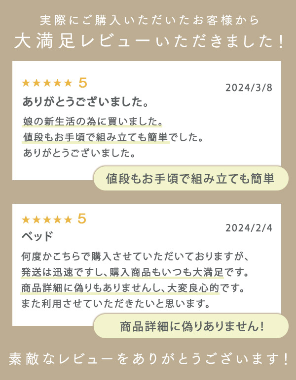 - 寝心地もよく組み立ても簡単でした! 1人でも出来ました!