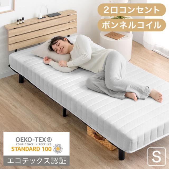 [即納] \週間ランキング1位/ 宮棚&2口コンセント 脚付きマットレス ベッド シングル ボンネルコイル 脚付きマットレスベッド シングルベッド マットレス ボンネル コイル 脚付き 宮付き 宮棚 宮 ヘッドボード 2口コンセント ベット 一体型