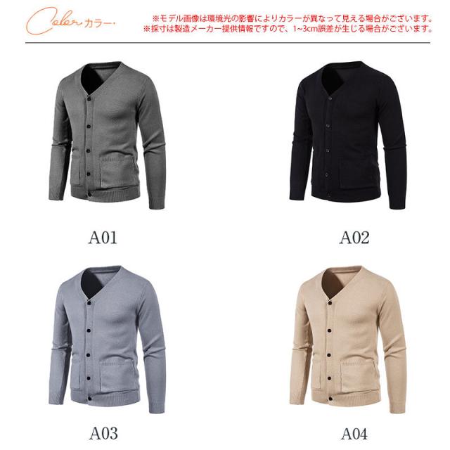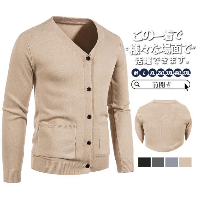ニットカーディガン メンズ ニットセーター ニットアウター 秋冬 ニットジャケット 長袖セーター カットソー 無地セーター カジュアル 40代 通勤 ビジネス
