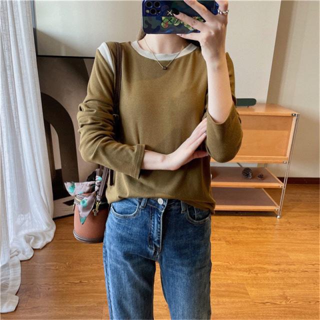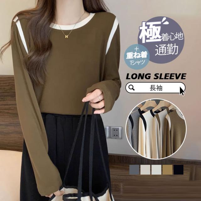 長袖 重ね着コーデ ゆったりサイズ 裾見せコーデ 裾出しコーデ インナー レイヤードコーデ 春 夏 秋 冬 オールシーズン 綿素材 秋服 レディース