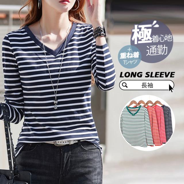 長袖 重ね着コーデ ゆったりサイズ 裾見せコーデ 裾出しコーデ インナー レイヤードコーデ 春 夏 秋 冬 オールシーズン 綿素材 秋服 レディース