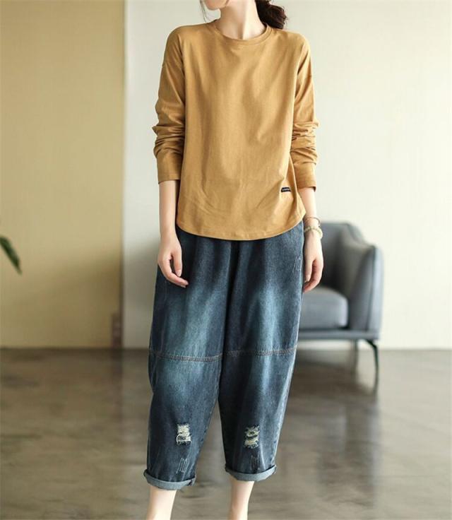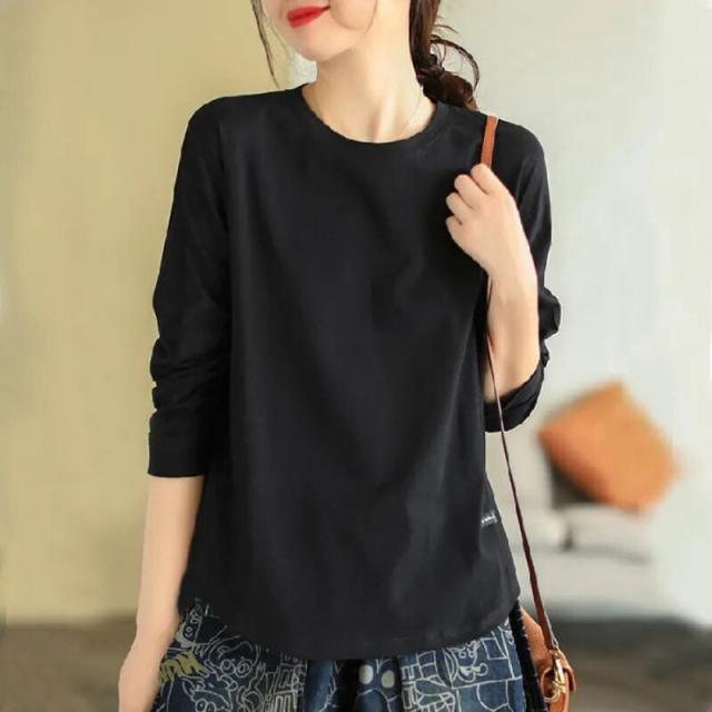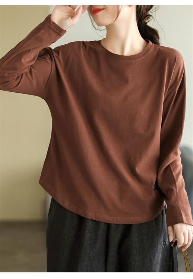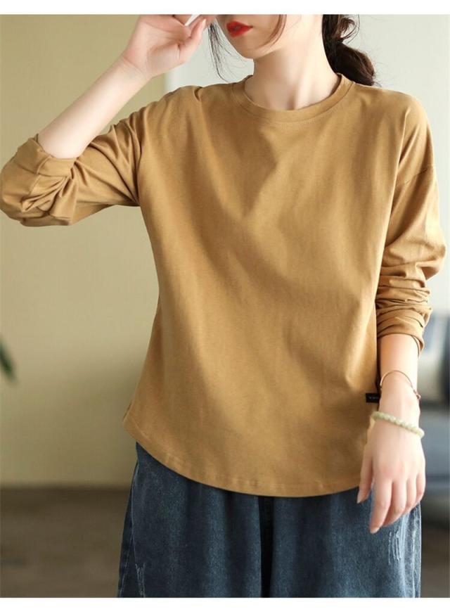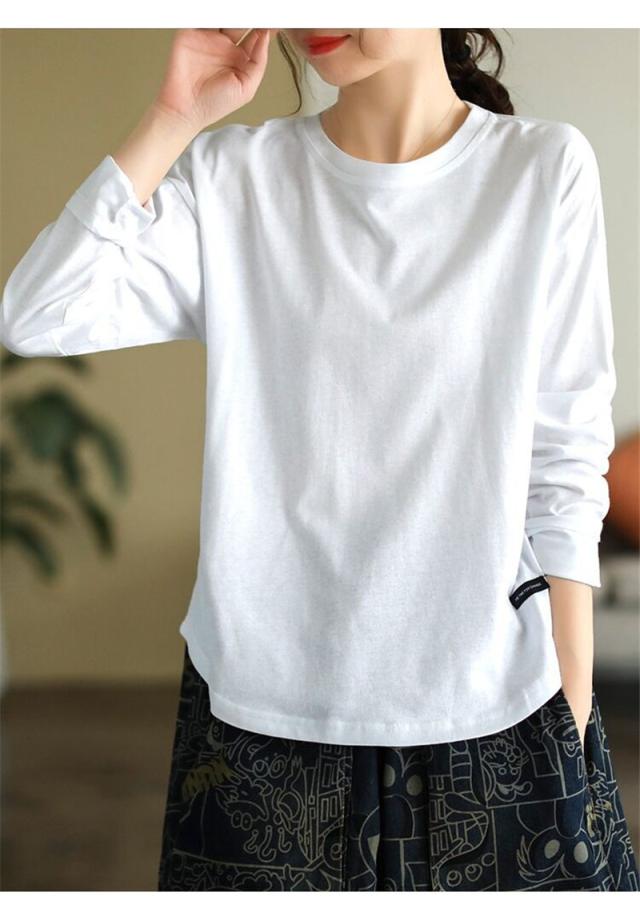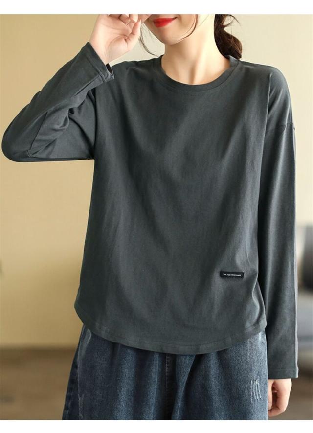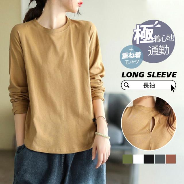長袖 重ね着コーデ ゆったりサイズ 裾見せコーデ 裾出しコーデ インナー レイヤードコーデ 春 夏 秋 冬 オールシーズン 綿素材 秋服 レディース