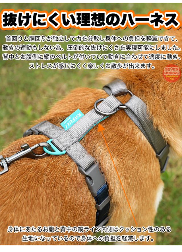 首回りと胴回りが独立して力を分散し身体への負担を軽減できて、動きの連動もしない為、圧倒的な抜けにくさを実現可能にしました。 背中とお腹側に縦のベルトが付いていて動きに合わせて適度に動き、ストレスが感じにくく楽しくお散歩が出来ます。 さらに引っ張りなどでのハーネスへの力を3方向に分散し、気管などの圧迫する事を抑え身体への負担を軽減できる身体に優しいハーネスとなっています。 リードの持ち手の内側は柔らかいクッション生地仕様で引っ張り時の衝撃を和らげる手に優しい仕様。 ■素材:ナイロン ■参考サイズ表 S:胸囲32〜42cm 首回り36〜54cm リード幅1.5cm M:胸囲43〜51cm 首回り38〜60cm リード幅2cm L:胸囲47〜59cm 首回り40〜69cm リード幅2.5cm ※パソコンのモニター設定などにより多少、色の違いが出てくる場合がございます。 【検索ワード】 犬 猫 服 犬の服 猫の服 キャットウェア ドッグウェア 猫の洋服 犬の洋服 男の子 女の子 犬用 大型犬 中型犬 小型犬 ペット服 dog 春 夏 秋 冬 服 ペット用 ドック用品 お散歩アイテム パターン お洒落 オシャレ おしゃれ かわいい 可愛い 軽量 涼しい 快適 脱げない 抜けない 抜けにくい |