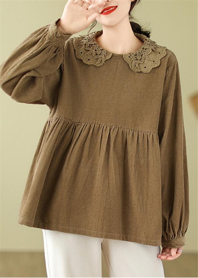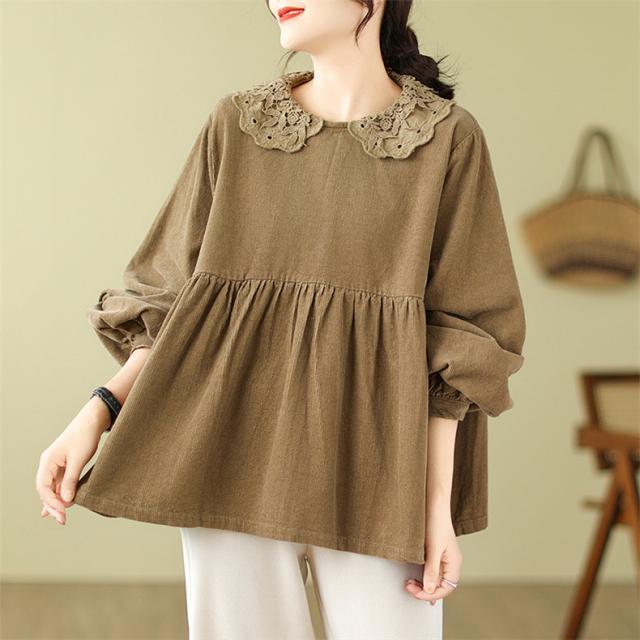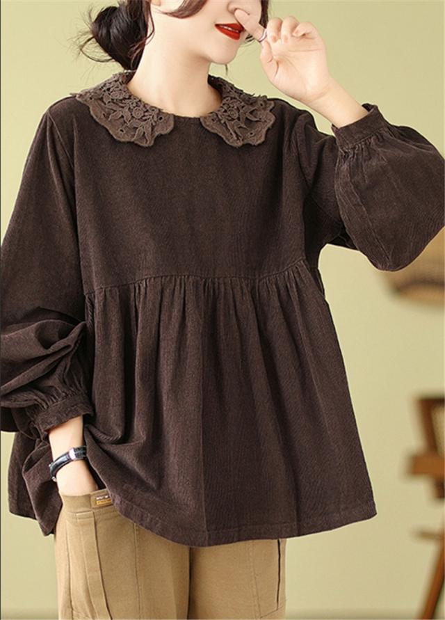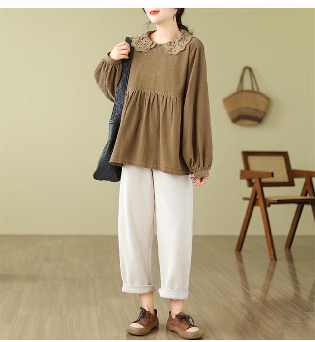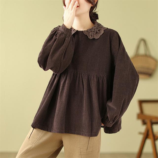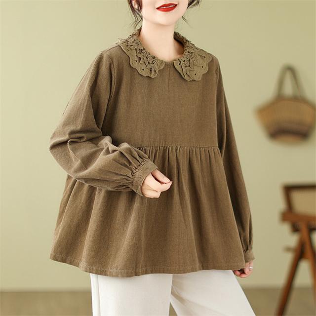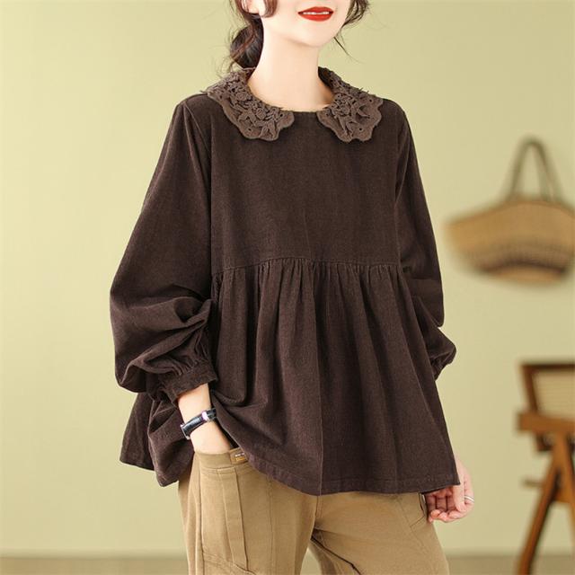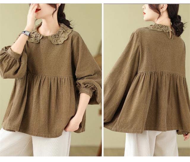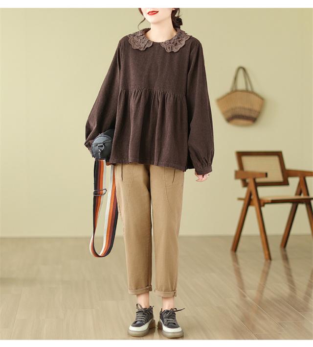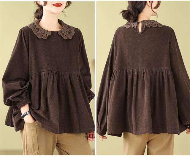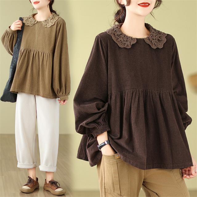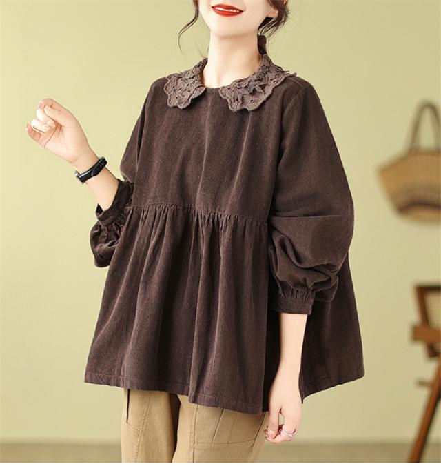 長袖シャツ コーデュロイ レディース 人気 秋トップス さりげなく 体型カバー 無地 レトロ フレア お洒落な大人のこなれ感 自然にトレンドな着こなしに